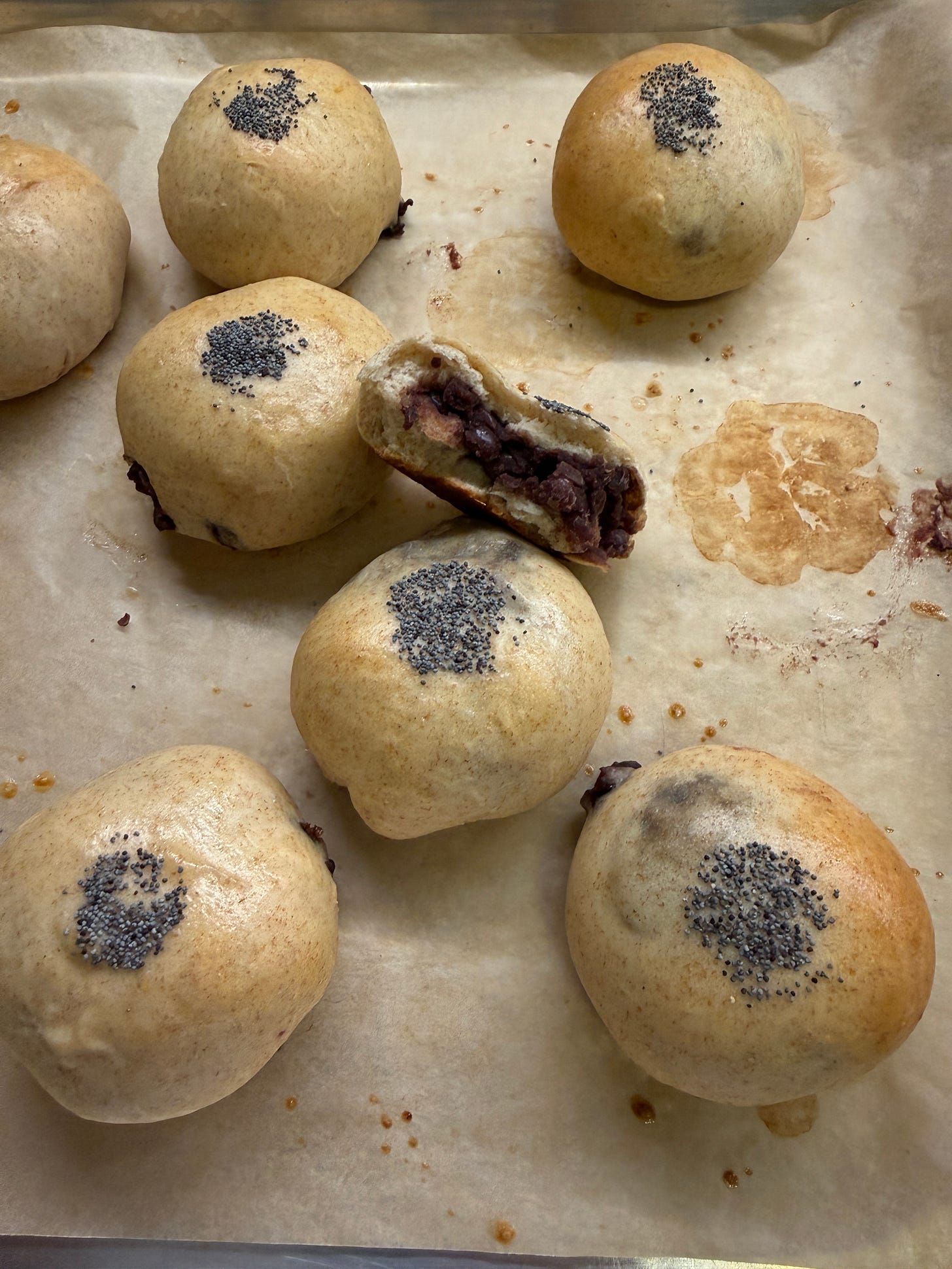 Since my most recent trip to Japan in November, I’ve fixated on baking my own anpan. Anpan is deeply nostalgic - it has existed in Japan since at least 1874 (which makes it not much younger than classics like the Viennese Sachertorte) and was first served to the Emperor Meiji (post the days of isolation) by the Kimuraya1 bakery (which continues to draw enormous crowds in Tokyo). Formulaically, it is also similar to any of the other classic Japanese sweets in which red bean paste is enrobed by a pillowy carbohydrate.
